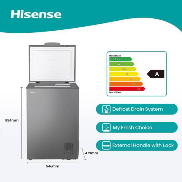 The Hisense 130L Chest Freezer FC-13DT4SB1 is a compact yet powerful appliance designed for homes, small businesses, and offices. With its 130-liter gross capacity, energy-efficient performance, and sleek design, this freezer offers reliable storage for meats, vegetables, and frozen goods.