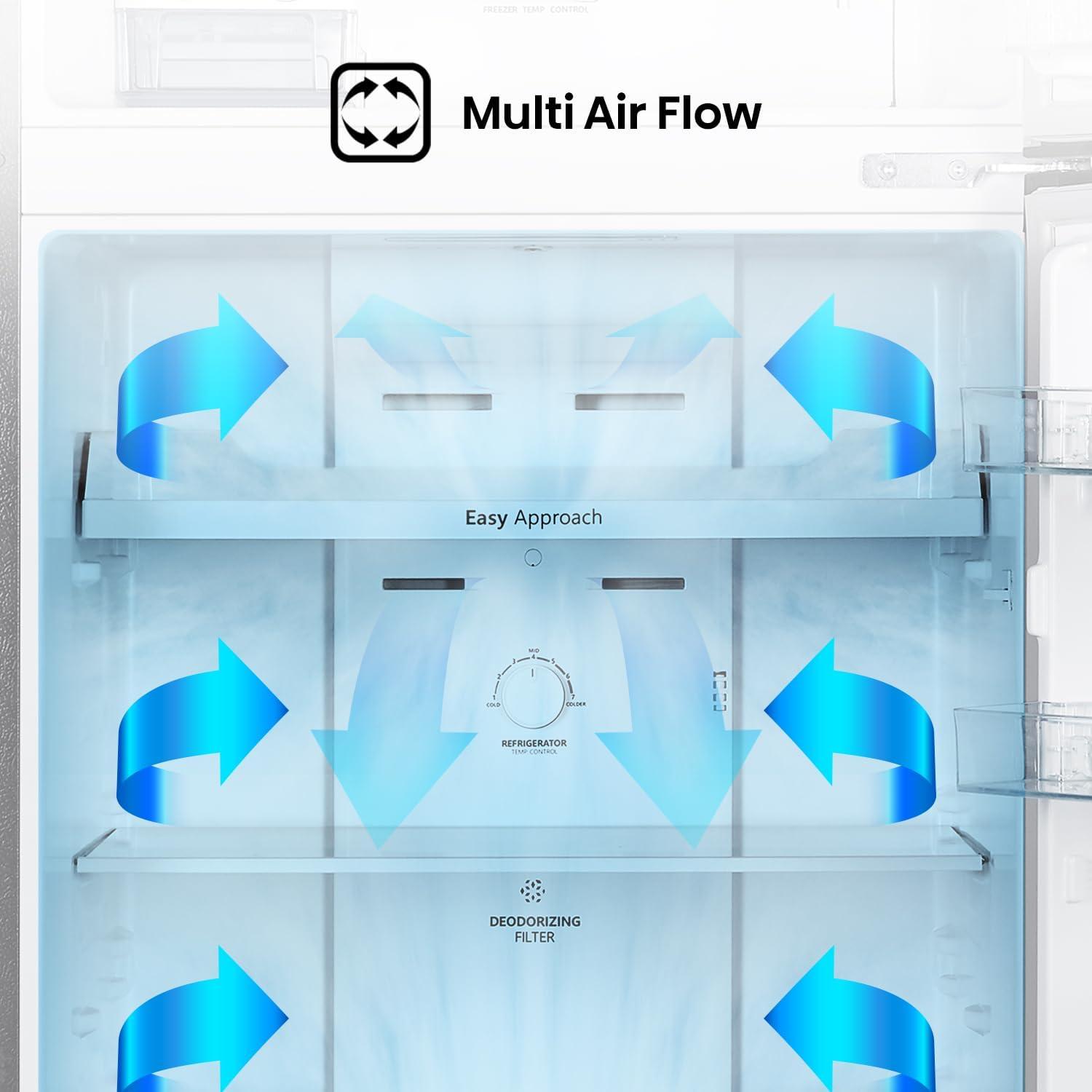 - Multi-Air Flow System: Ensures even cooling throughout the fridge.
