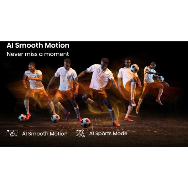 Gamers will benefit from Game Mode Plus, which includes Auto Low Latency Mode (ALLM) and Variable Refresh Rate (VRR) at 60Hz. These features reduce input lag and enhance responsiveness, making the TV ideal for console gaming. The Game Bar provides quick access to gaming settings.