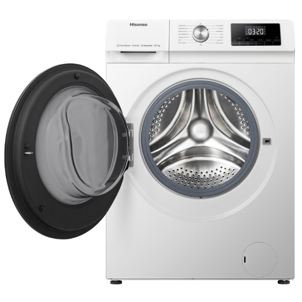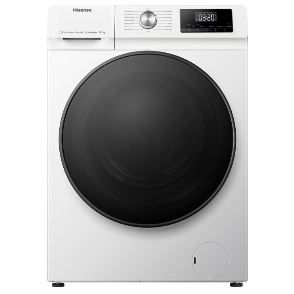 The Hisense WDQA8014EVJM 8Kg Washer Dryer is the ultimate space-saving solution for modern homes. Combining powerful washing and efficient drying in one sleek unit, this appliance is perfect for households that value convenience, hygiene, and energy efficiency. With advanced features like Steam Wash, PureJet technology, and an Inverter Motor, this washer dryer ensures your clothes are not only clean but also fresh, soft, and allergen-free.