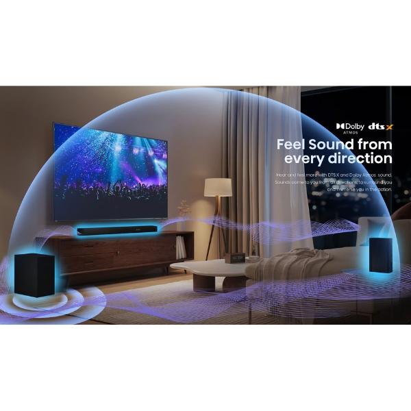 The Hisense AX5100Q Sound Bar is a comprehensive audio solution for users seeking true surround sound without the complexity of traditional home theater systems. With its 5.1 channel setup, wireless subwoofer, rear speakers, and support for Dolby and DTS technologies, it delivers a premium audio experience that’s easy to set up and use. Whether you're upgrading your TV sound or building a home cinema, the AX5100Q is a powerful, user-friendly choice.