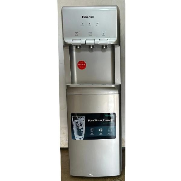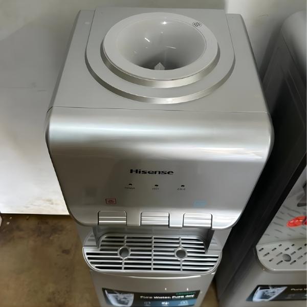 The Hisense H96WDTS3S1 boasts a sleek silver finish that complements modern interiors. Its compact footprint makes it ideal for kitchens, break rooms, reception areas, and offices. The top-loading design ensures easy bottle replacement without the need for plumbing, while the 12-liter bottom cabinet provides convenient storage for cups, bottles, or extra water containers.