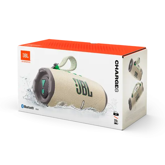 Engineered for adventure, the Charge 6 features a fabric-wrapped body with a removable handle strap for easy portability. Its IP68 rating ensures complete protection against water, dust, and accidental drops from up to 1 meter. Whether you’re at the beach, poolside, or hiking, this speaker is built to withstand the elements.