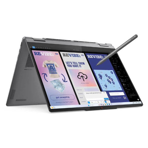 Lenovo’s signature Yoga hinge provides smooth transitions between modes, supporting touch and pen input with stable control in any position.