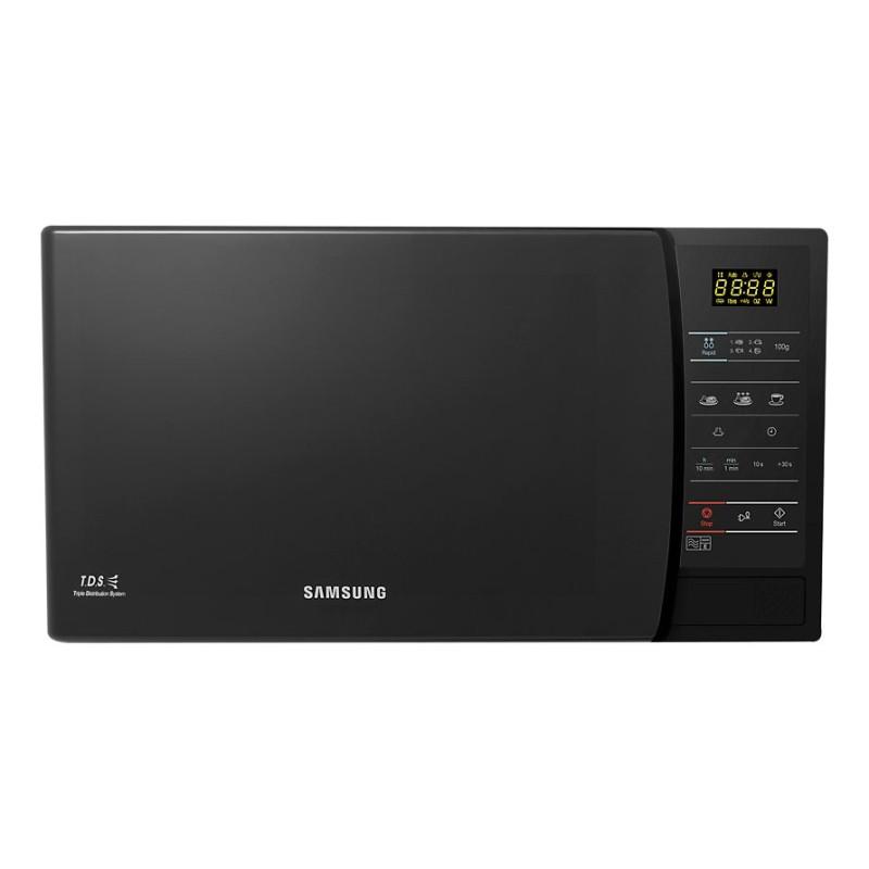 The Samsung ME731K-B Solo Microwave is a compact yet powerful kitchen appliance designed for everyday convenience. With a 20-liter capacity, 800W microwave power, and advanced features like Ceramic Enamel Interior and Triple Distribution System, this microwave ensures fast, even cooking while maintaining hygiene and durability. Its sleek black finish and intuitive touch control panel make it a stylish addition to any modern kitchen.