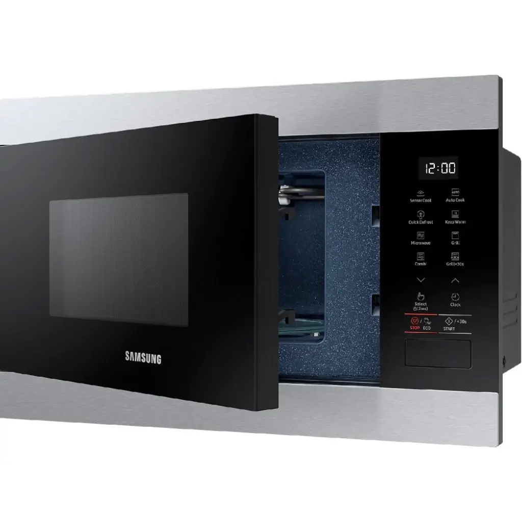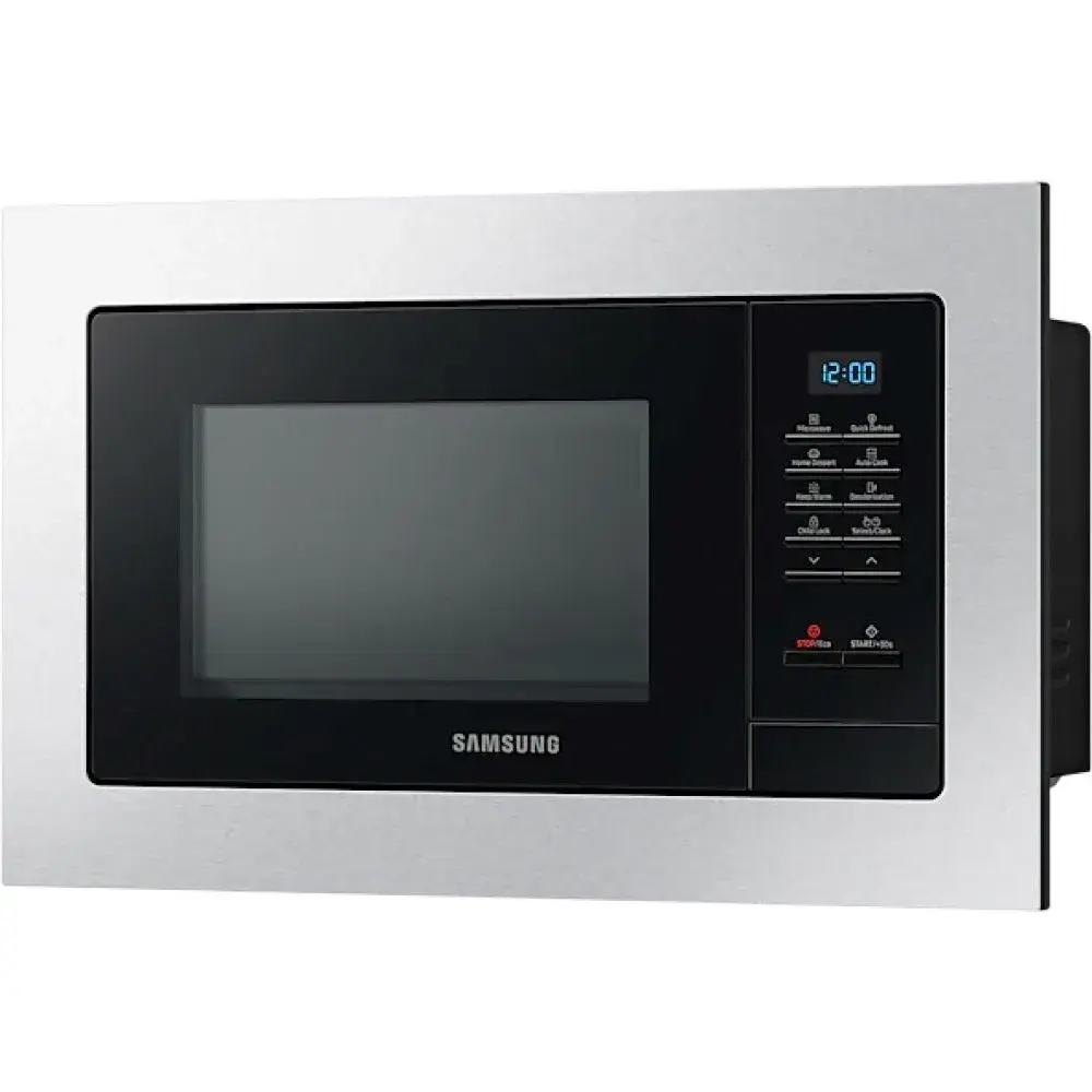 The Samsung MS23A7013AT Built-In Microwave is designed for modern kitchens that demand style, convenience, and performance. With a 23-liter capacity, 800W microwave power, and advanced features like Quick Defrost, Home Dessert, and Ceramic Insideβ’, this appliance ensures fast, even cooking while maintaining hygiene and durability. Its sleek stainless steel frame and intuitive electronic controls make it a perfect fit for contemporary kitchen designs.