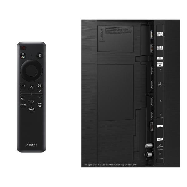 - Tizen OS: Access apps like Netflix, YouTube, Disney+, and Samsung TV Plus.