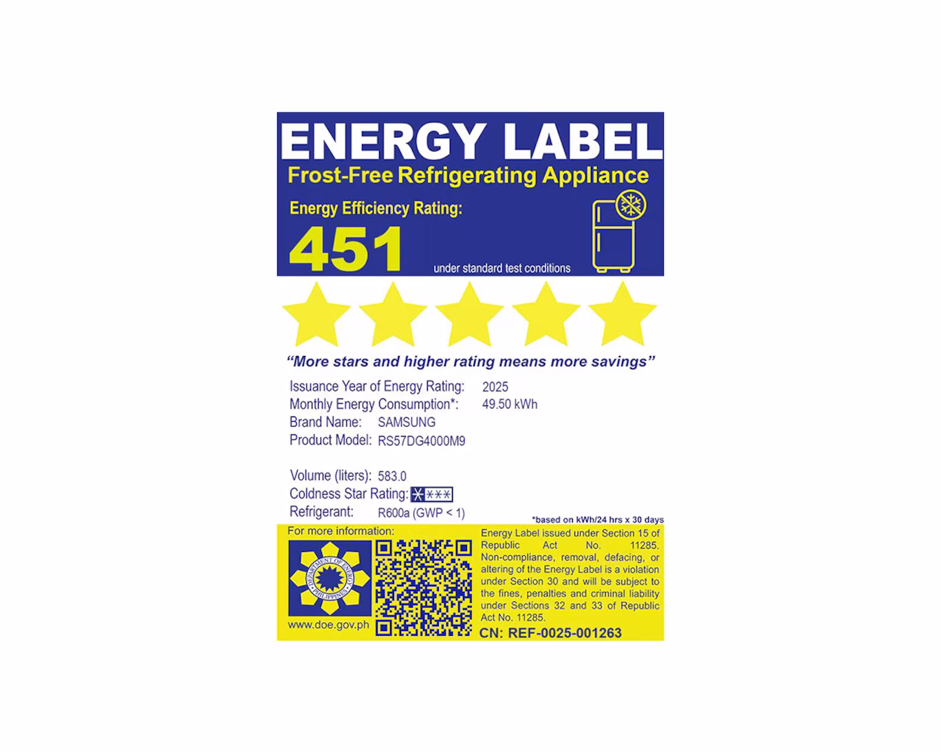 Powered by a Digital Inverter Compressor, the RS57DG4000M9 delivers quiet performance and long-lasting durability, backed by a 20-year warranty. The No Frost cooling system eliminates manual defrosting, while Power Cool and Power Freeze functions provide rapid cooling and freezing for groceries and beverages.