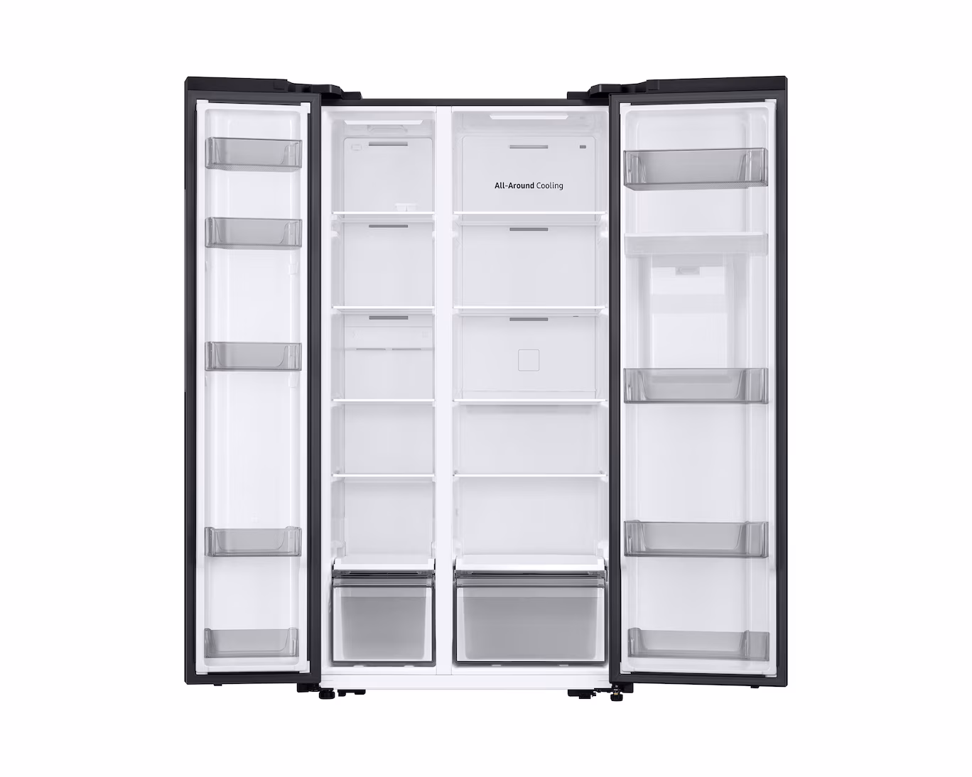 The Samsung RS57DG4100B4 Side-by-Side Refrigerator is a premium appliance designed for modern homes that demand style, efficiency, and smart functionality. With a 560L net capacity, this refrigerator offers ample storage for large families while maintaining a sleek, space-saving design thanks to SpaceMax™ technology, which maximizes internal space without increasing external dimensions.