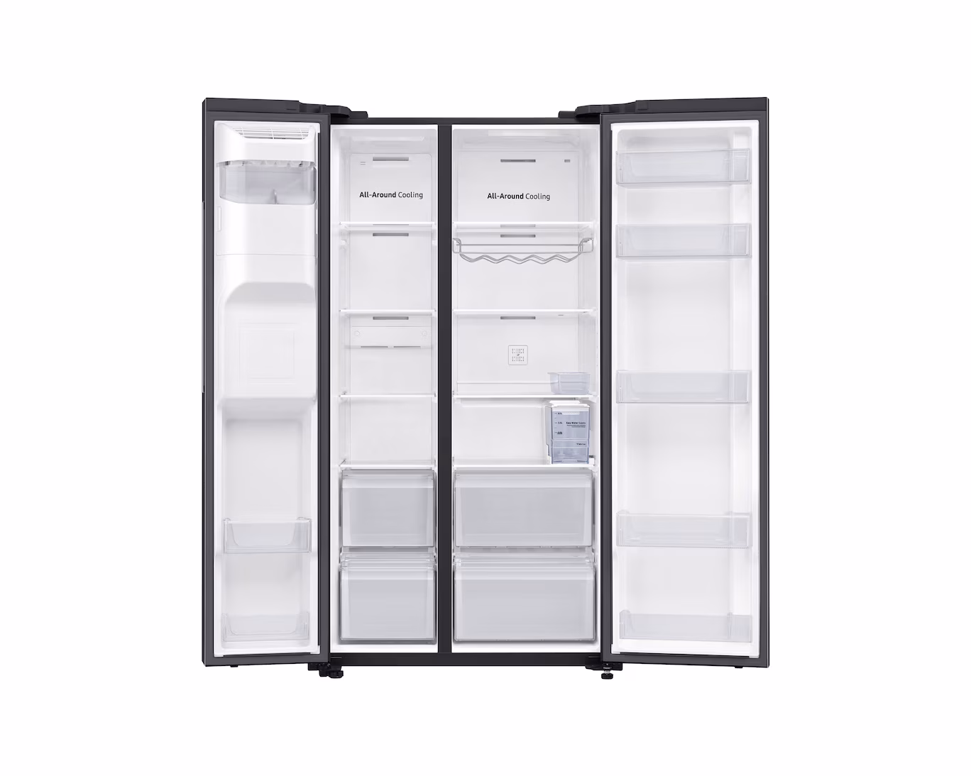 The Samsung RS64R5311B4 Side-by-Side Refrigerator is a premium appliance designed for large households and modern kitchens. With a 635L gross capacity, this refrigerator offers ample storage for fresh and frozen foods while maintaining a sleek, space-efficient design thanks to SpaceMax™ technology, which maximizes internal space without increasing external dimensions.