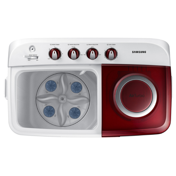 The Samsung WT90H3230MG 9KG Twin Tub Washing Machine is a semi-automatic washer designed for efficiency, durability, and convenience. With Air Turbo Drying, EZ Wash Tray™, and a rust-proof plastic body, this washing machine ensures powerful cleaning and quick drying for all your laundry needs.